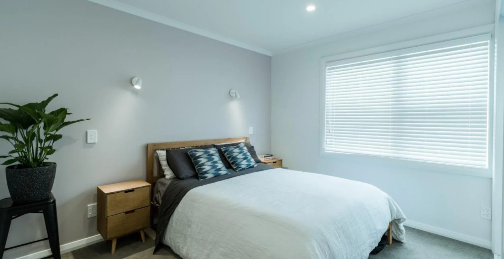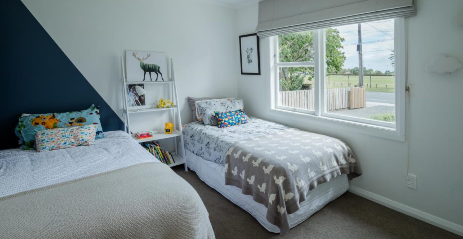 As you enter through the front door you are met with the modern kitchen and its sleek black cabinetry with induction cooking in the island. The separate bar/coffee servery is a fabulous addition to the kitchen area and features an old fabric mesh front radio. This three-bedroom 110sqm (more or less) fully insulated home comes with ducted climate-controlled heating and cooling and the addition of a wood burner.